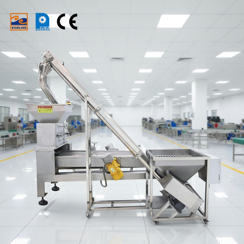 অপচয়কে দরকারী পণ্যে রূপান্তর করুন যা আইসক্রিম, চকোলেট, কেক, মিষ্টি ইত্যাদির জন্য ব্যবহার করা যেতে পারে।স্রাব পোর্ট ধাতু বিদেশী পদার্থ অপসারণের জন্য একটি শক্তিশালী চৌম্বকীয় প্লেট দিয়ে সজ্জিত করা হয়বড় বড় ওয়েফেল/বিস্কুট পুনরায় পেষণ করার জন্য একটি স্পাইরাল কনভেয়র অন্তর্ভুক্ত করা হয়েছে।